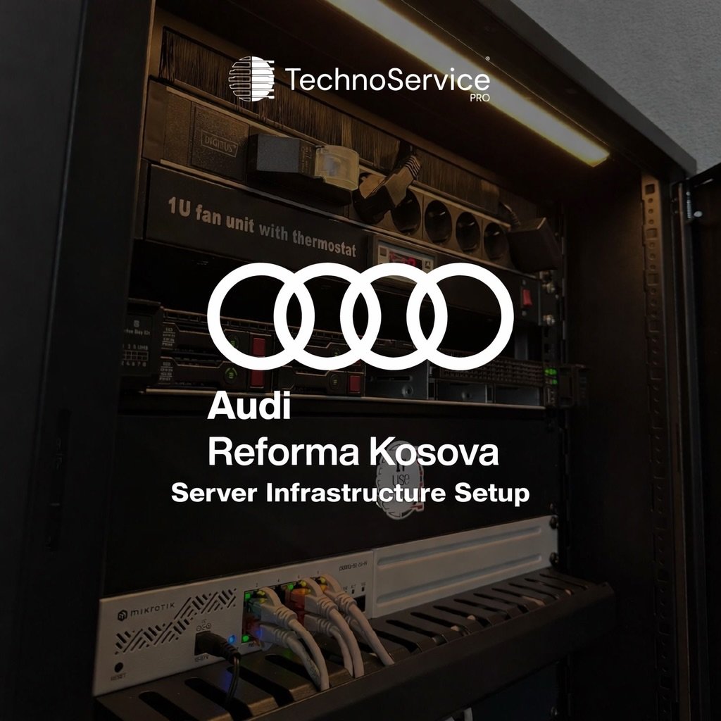 Installation of advanced server infrastructure for Audi Reformat Kosovo, ensuring secure, stable, and high-performance IT operations.